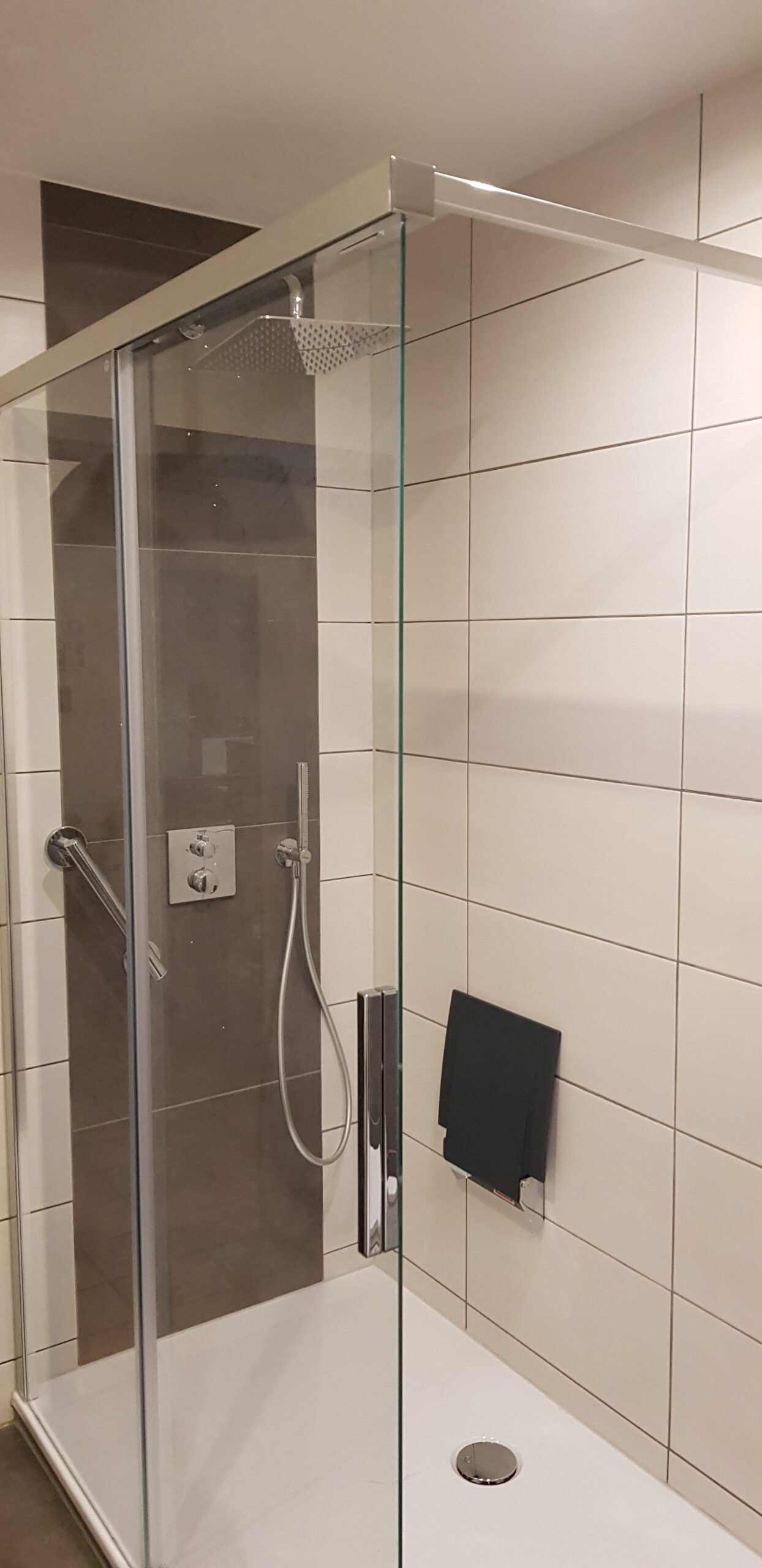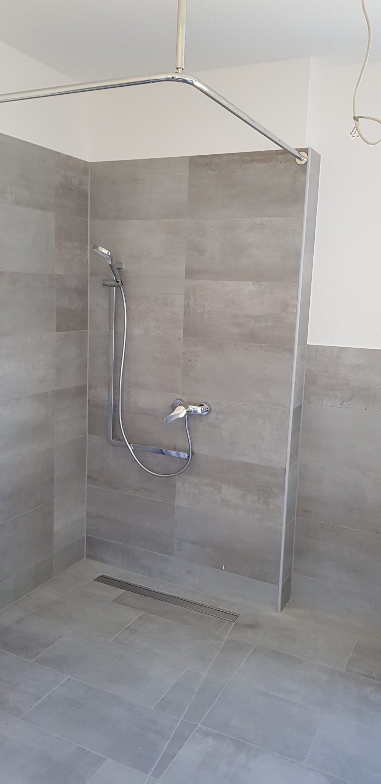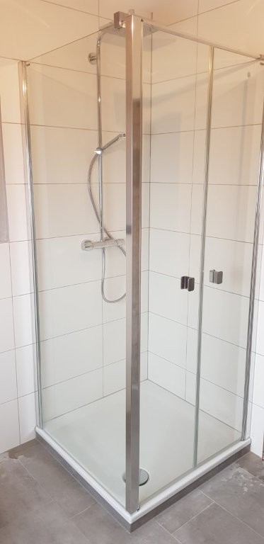 Die neue Dusche ist bodennah ausgeführt. Der Einstieg ist komfortabel und sicher. Der Raum wirkt offener und funktionaler. Die Lösung verbessert die Nutzung, ohne den Grundriss zu verändern.
