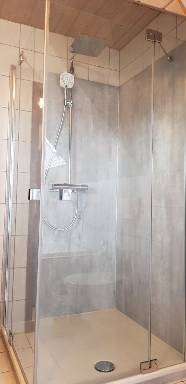 Die neue Dusche ist bodennah ausgeführt. Der Einstieg ist komfortabel und sicher. Der Raum wirkt offener und funktionaler. Die Lösung verbessert die Nutzung, ohne den Grundriss zu verändern.